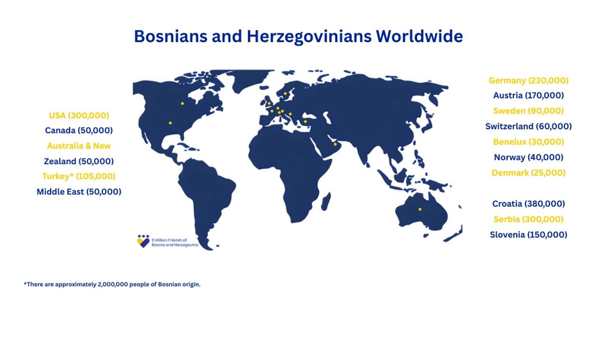 We foster a worldwide network that unites the Bosnian diaspora, friends of Bosnia and Herzegovina, and international partners.